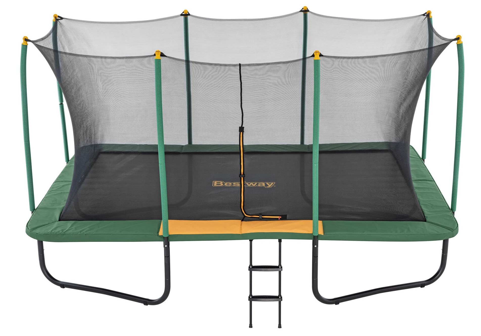 Fritstående havetrampolin inklusiv sikkerhedsnet og stige fra Bestway. Trampolinens størrelse på 457x274x283cm gør den ideel til haven.