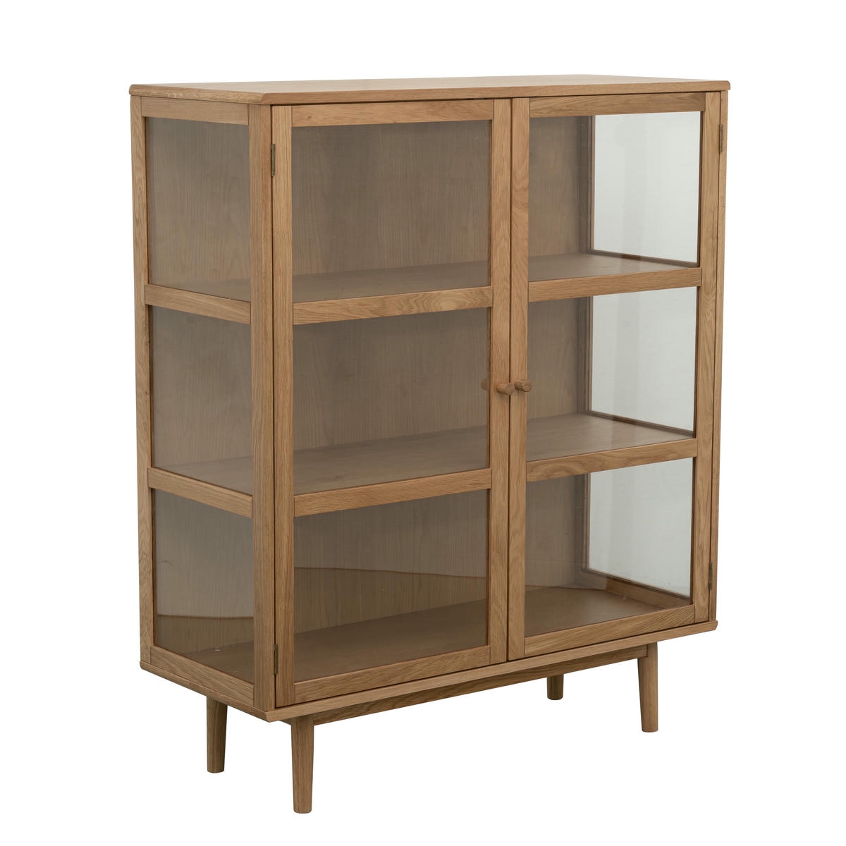 Tidløst vitrineskab med et klassisk, indbydende design. Det nordiske formsprog forener det varme egetræ med moderne funktionalitet i en lavere og mere kompakt udgave.